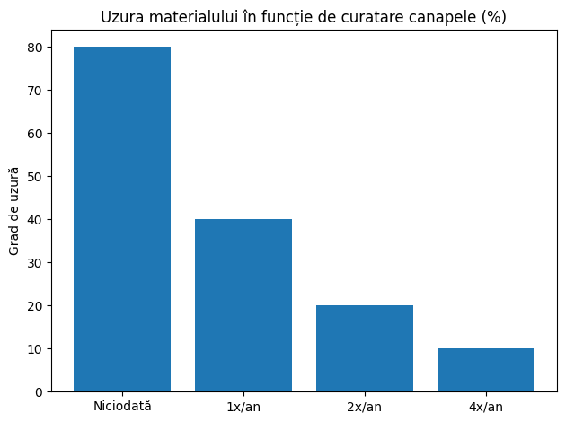 curățare 1x/an → uzură medie